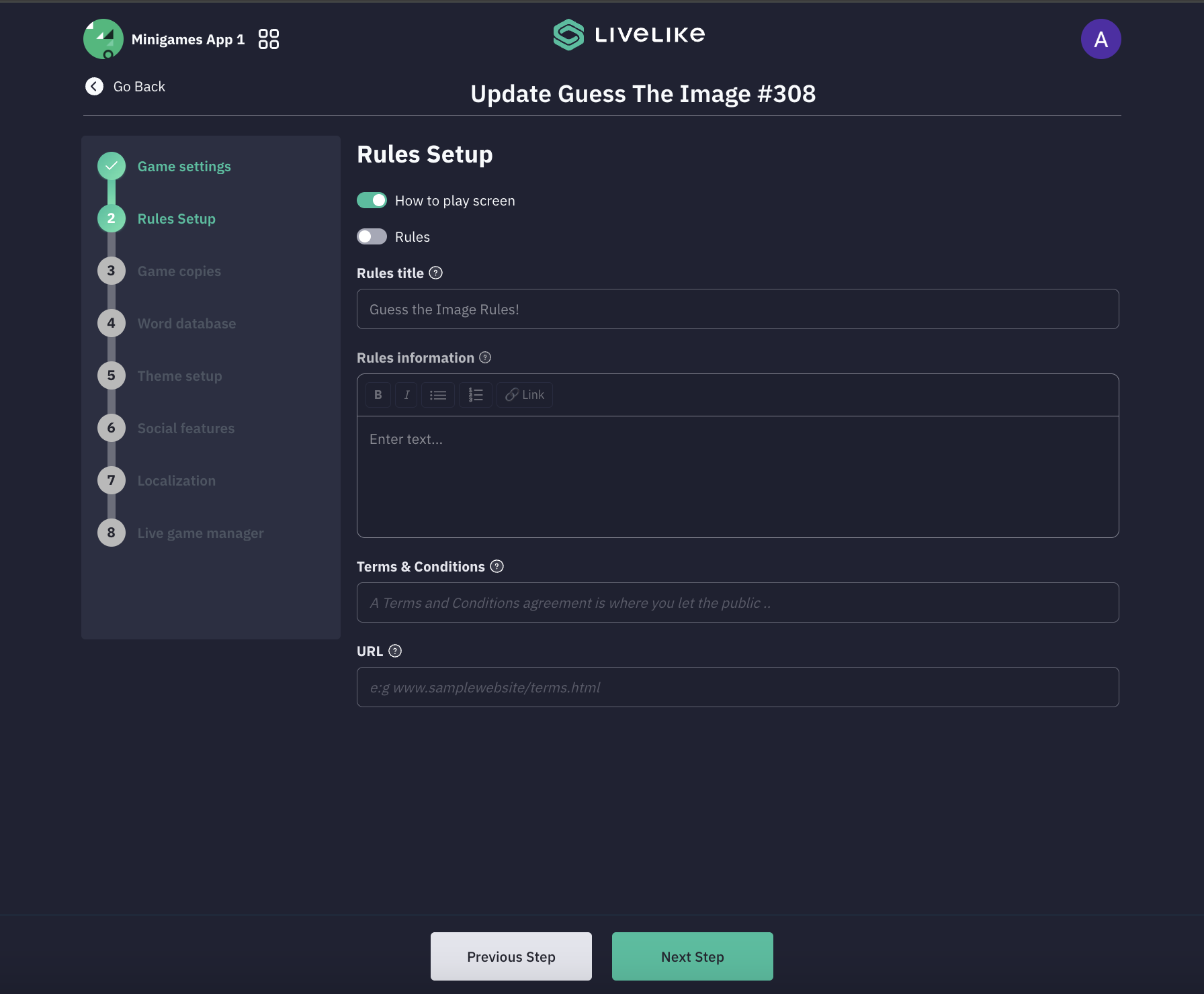 Game Rules This section allows Producers to configure instructional content and game rules shown to players.