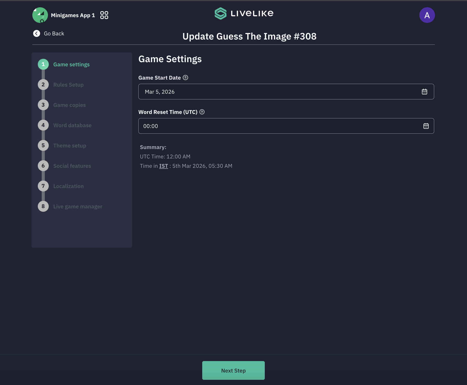 Game Start Date: Defines the date when the game becomes active and available to players.