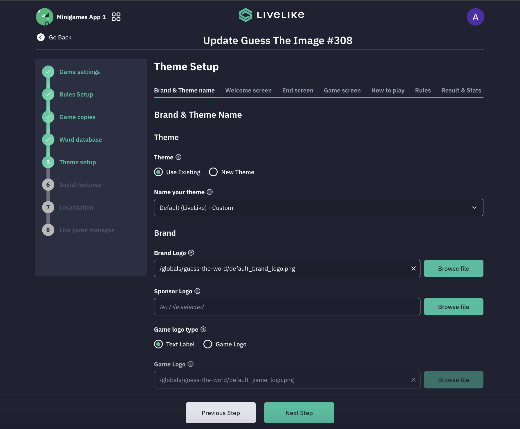 In this step, you can customize the visual branding and theme elements of your game.