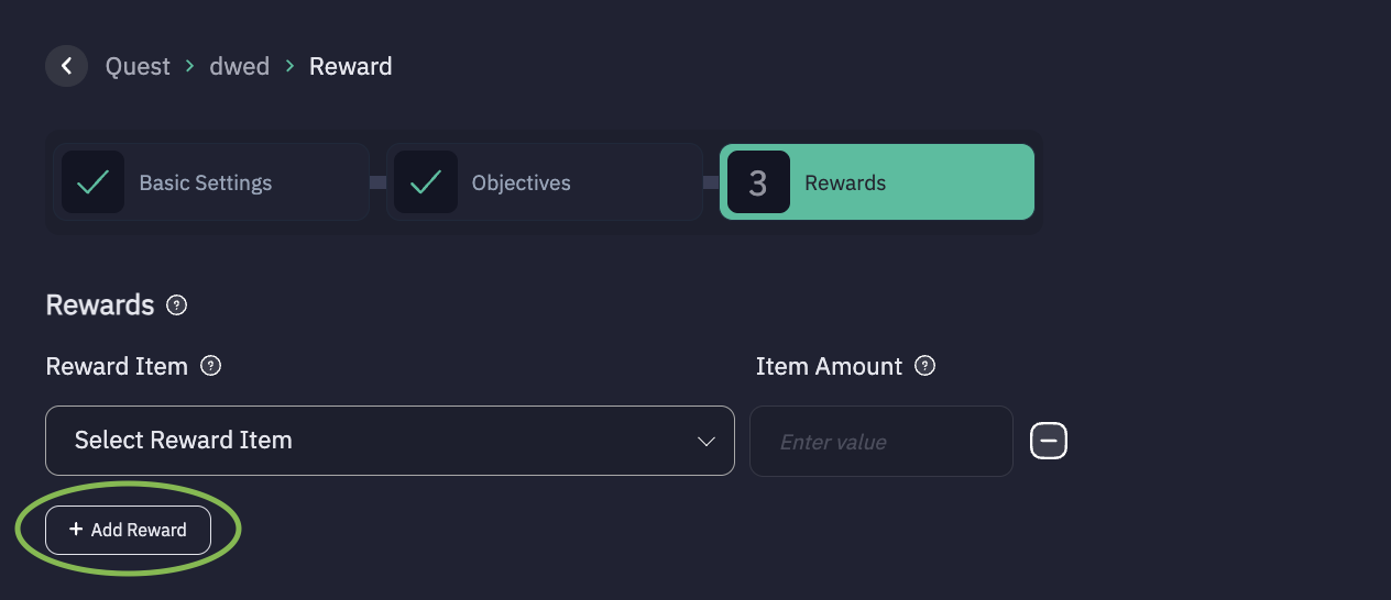 To add another Reward, click "+ Add Reward" and repeat the steps.