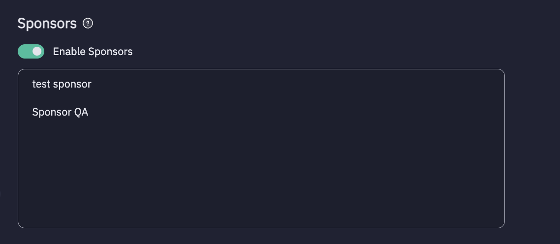 Enable the Sponsors toggle, then select the sponsor you want to include.