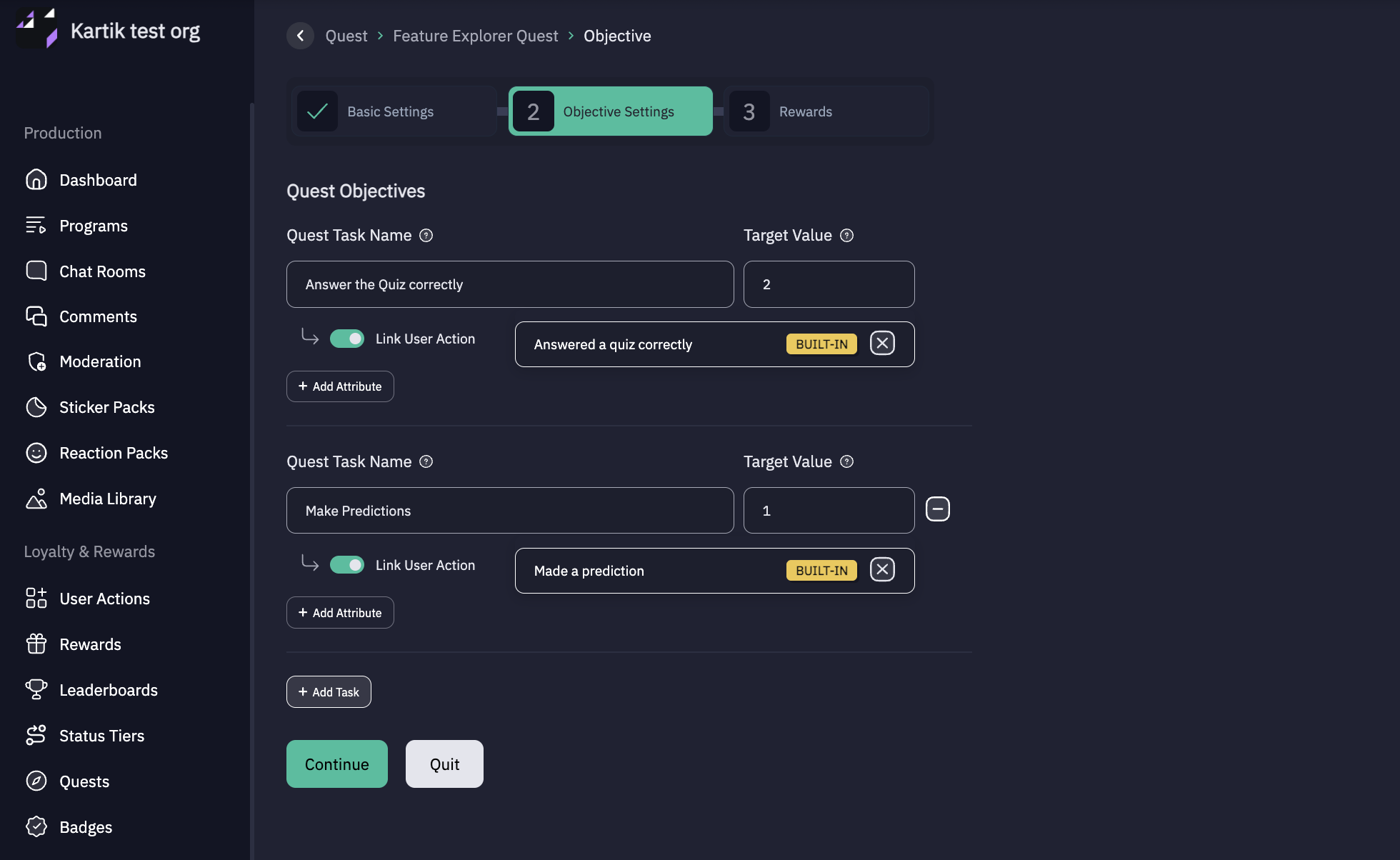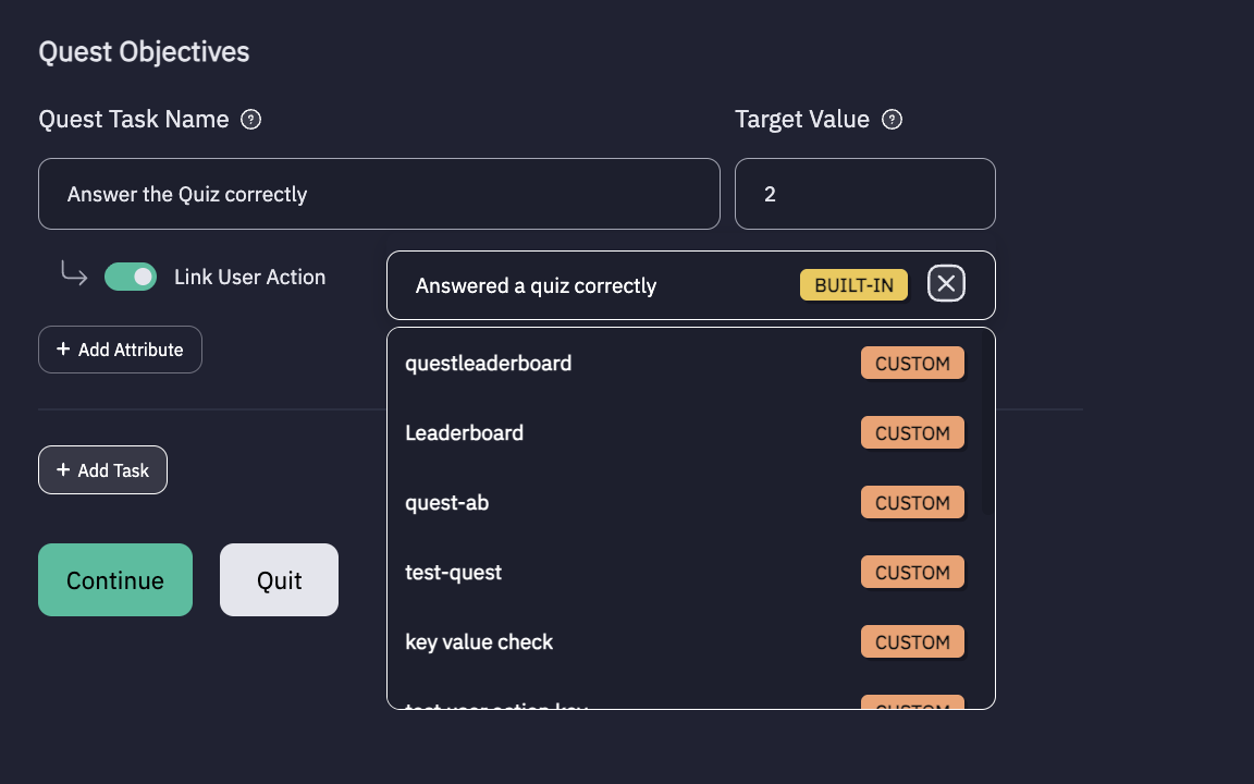 - Enter a Quest Task Name (e.g., Answer the Quiz Correctly or Make a Prediction).