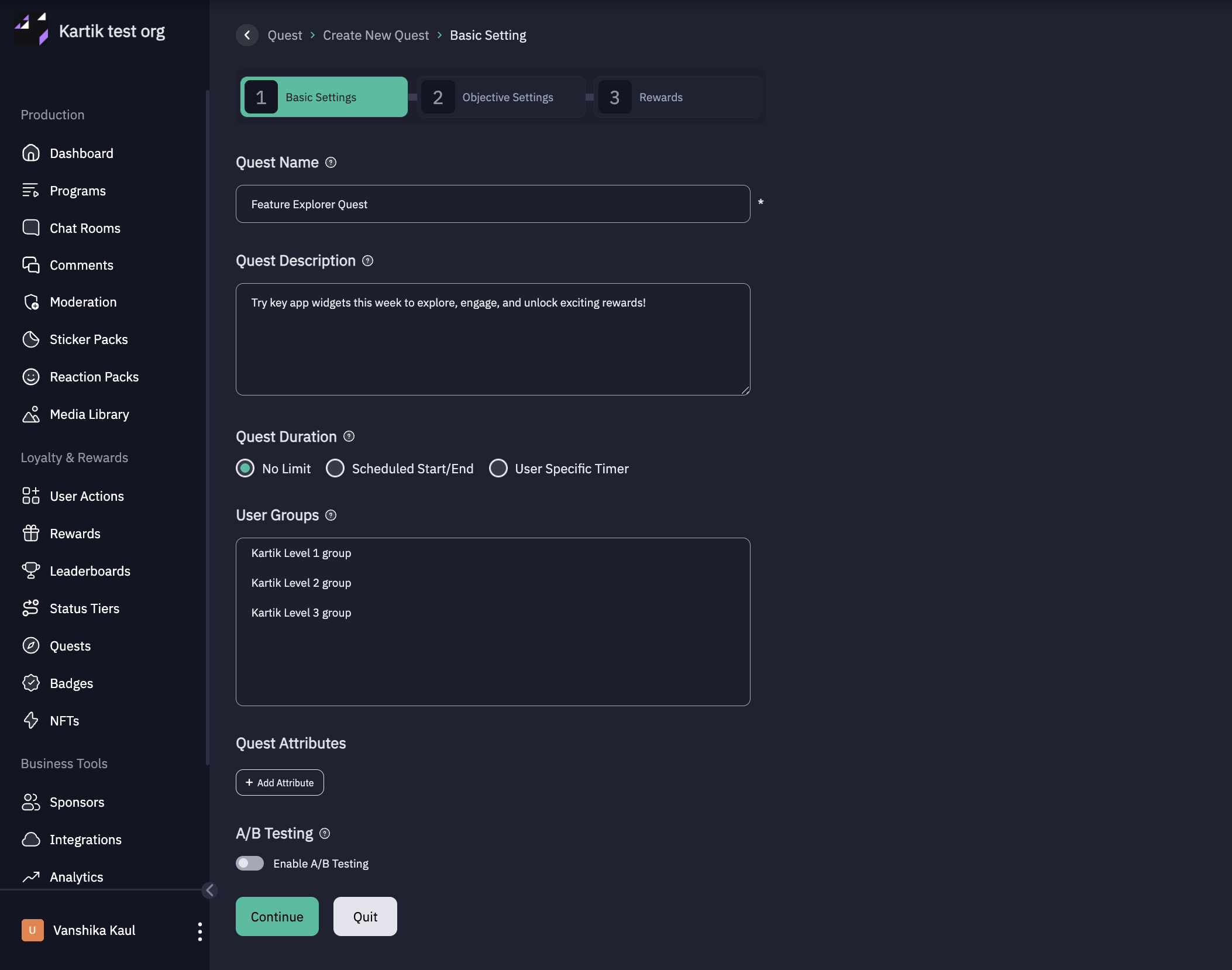 Use this option when the quest doesn’t need a specific start or end time. Ideal for ongoing or evergreen quests that users can complete anytime.