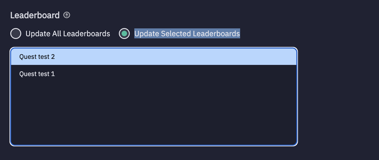 - Select Update All Leaderboards or Update Selected Leaderboards.