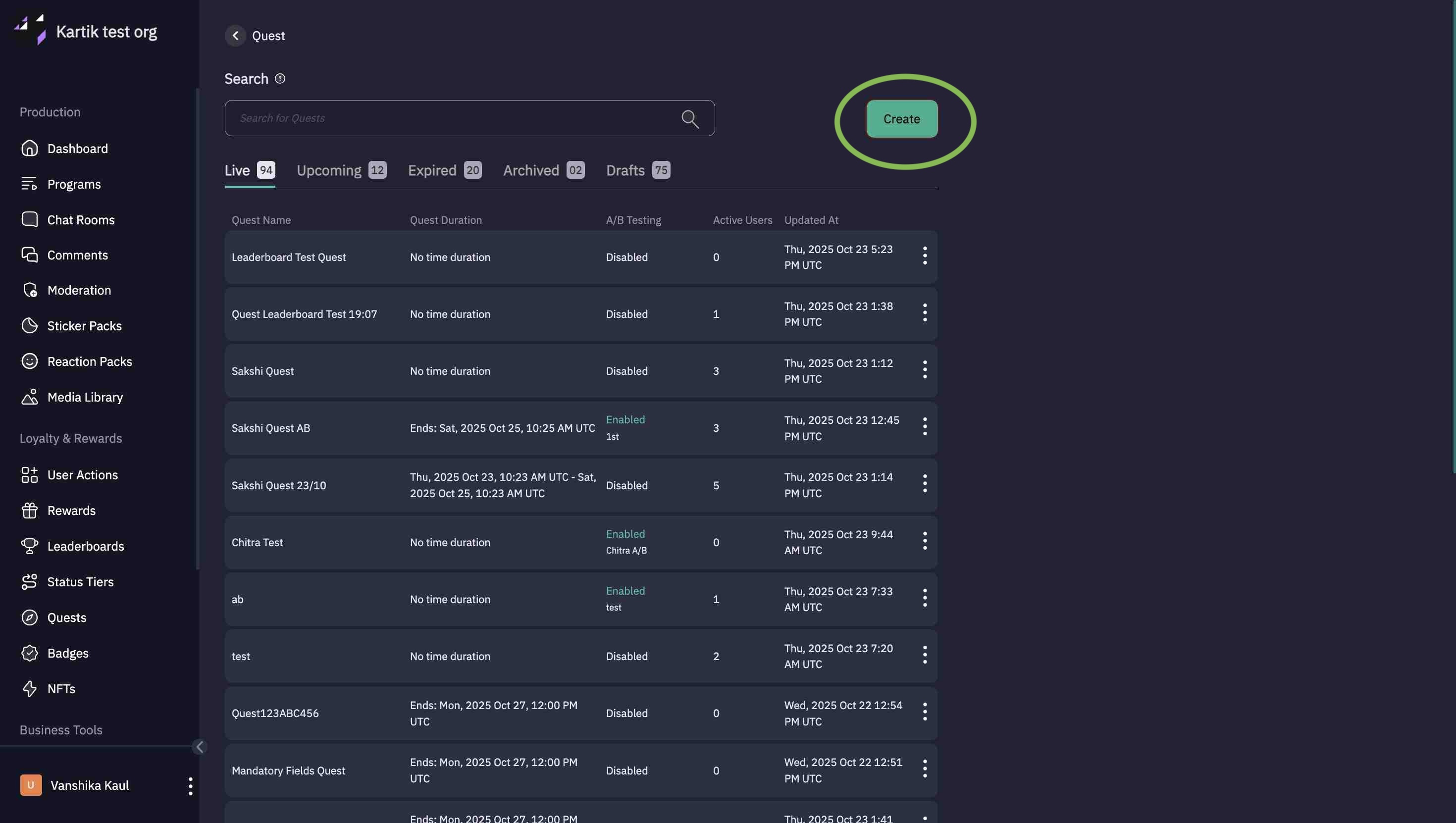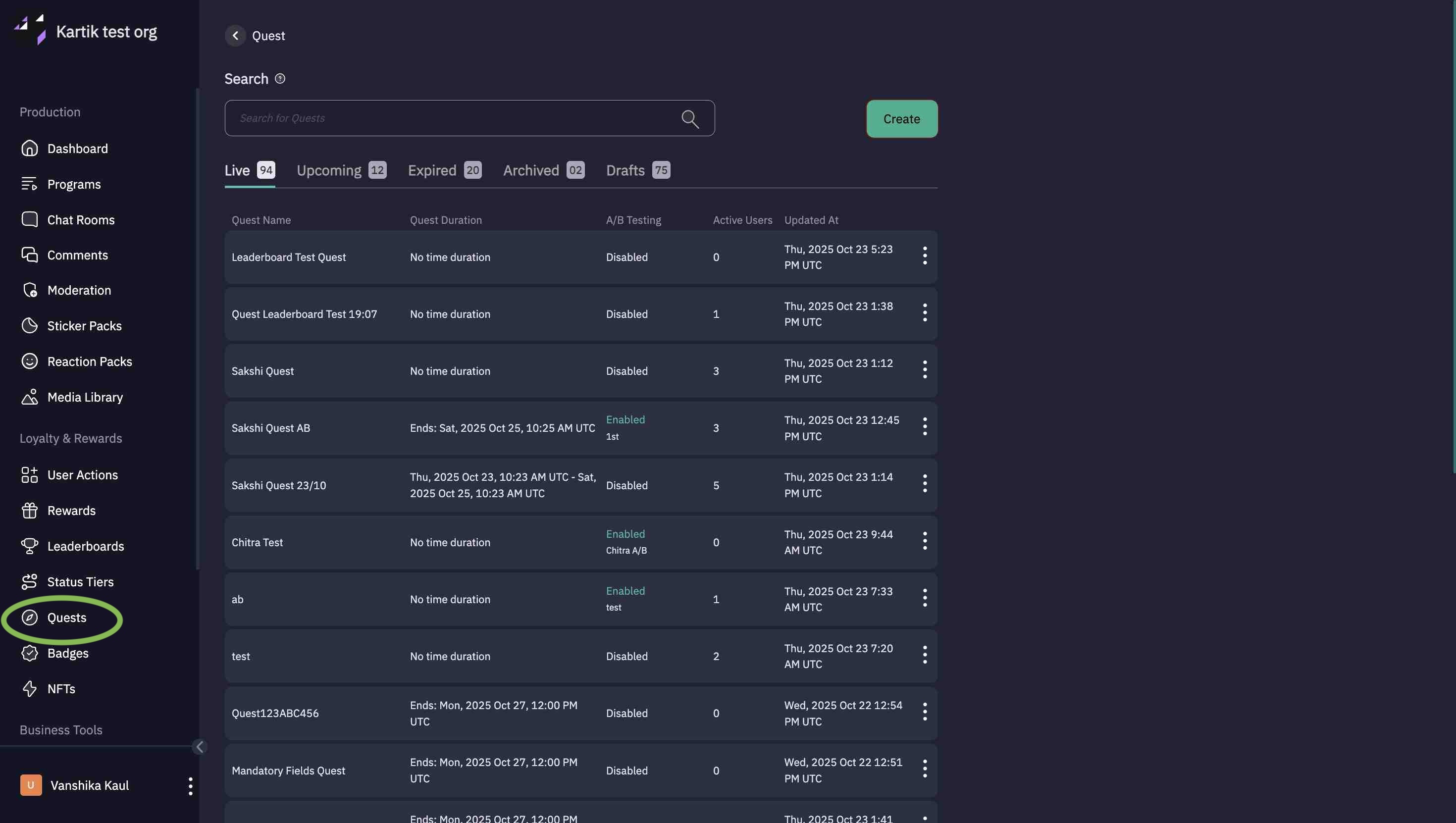 From the left-hand menu, click Quests.