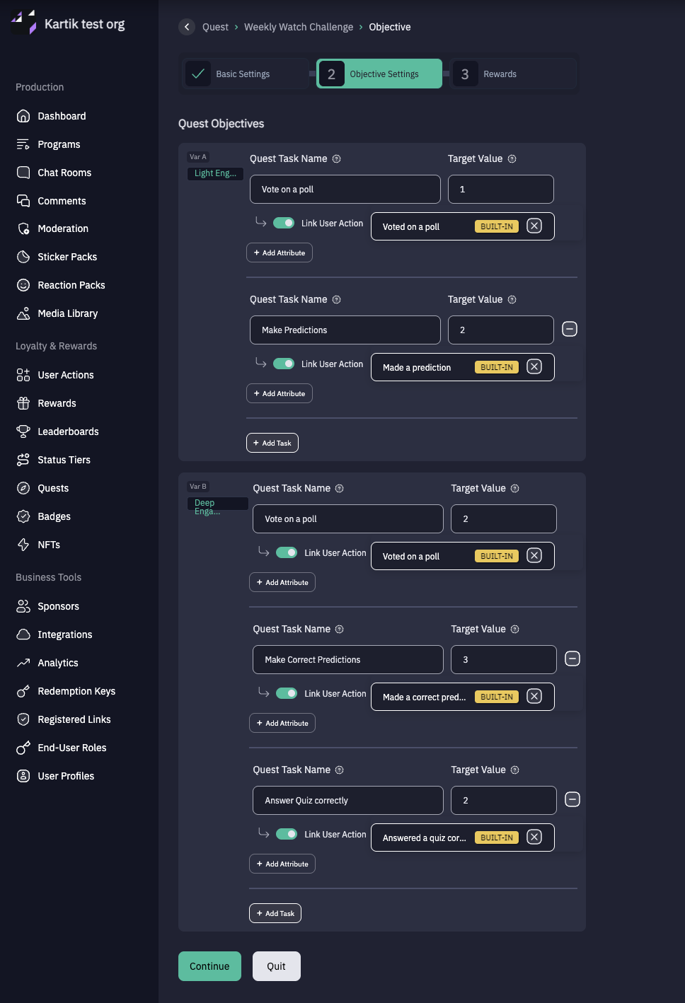 - Quest Task Name – Enter a task name for Variant A.