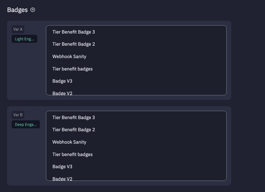 - Variant B – Select a badge from Var B available section.