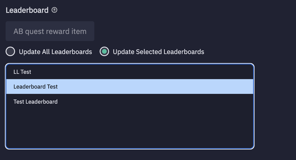 - Select Update All Leaderboards or Update Selected Leaderboards.
