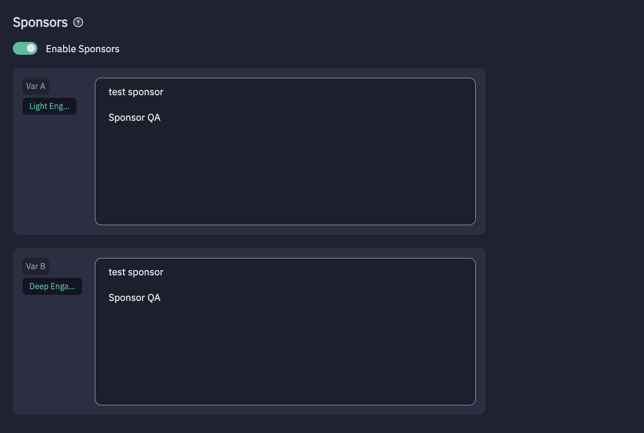 - Select a sponsor for Variant B.