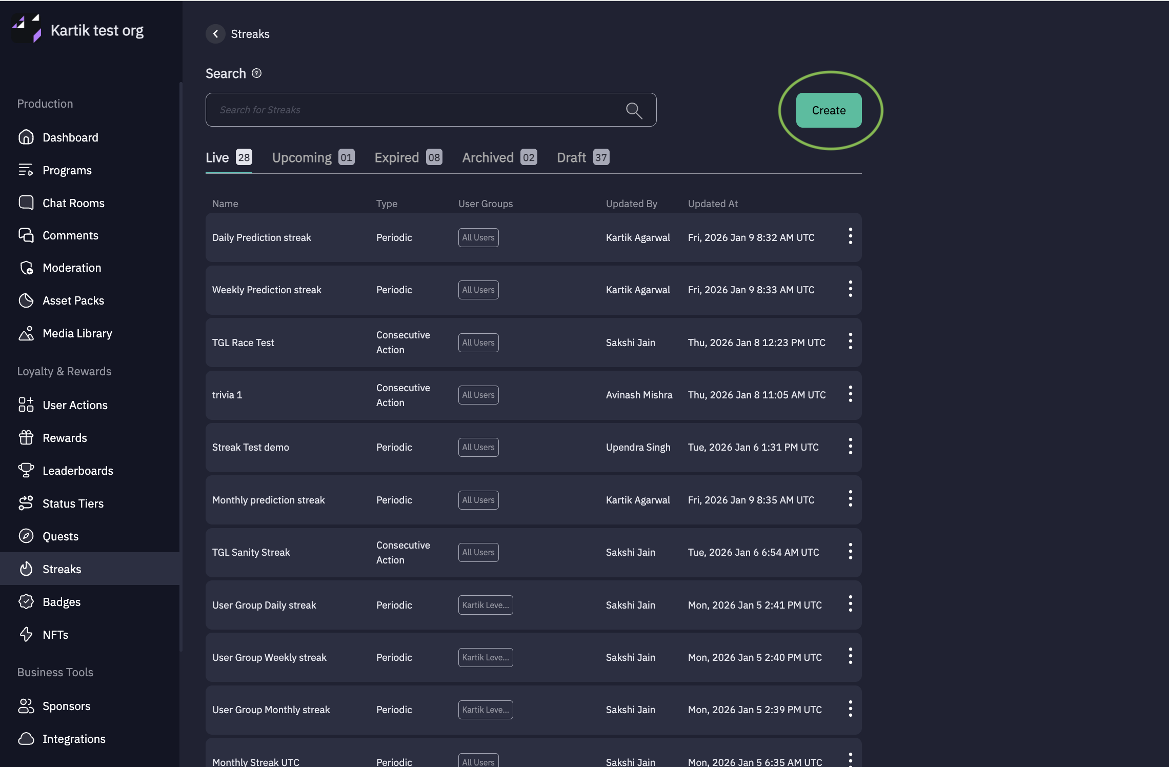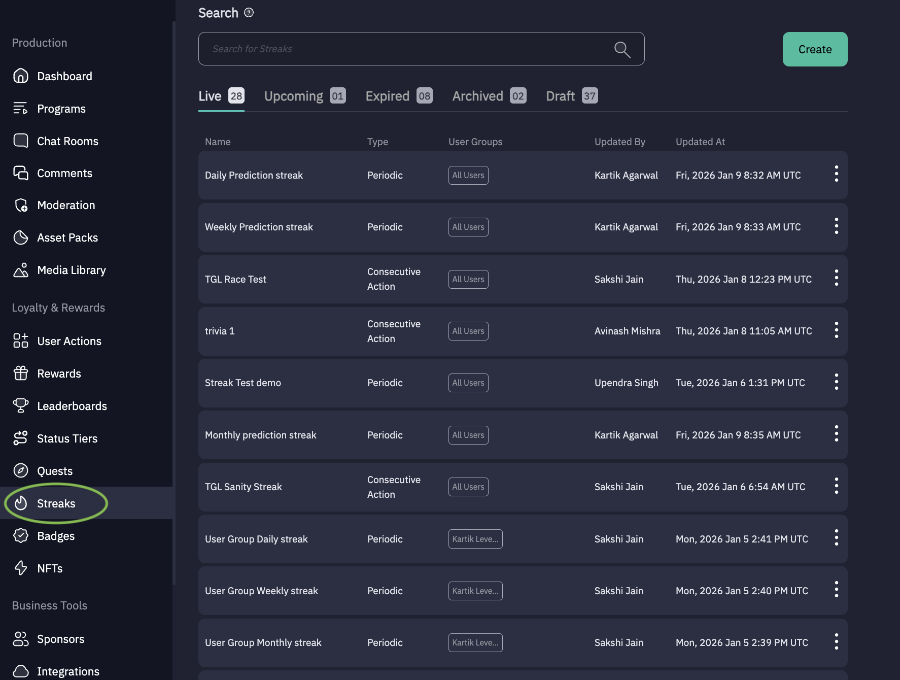 Click “Create ” to create New Streak.