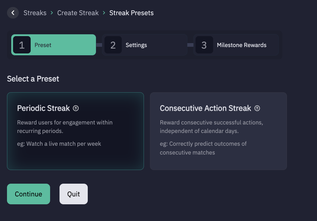 Select Streak Type: Periodic Streak or Consecutive Action Streak