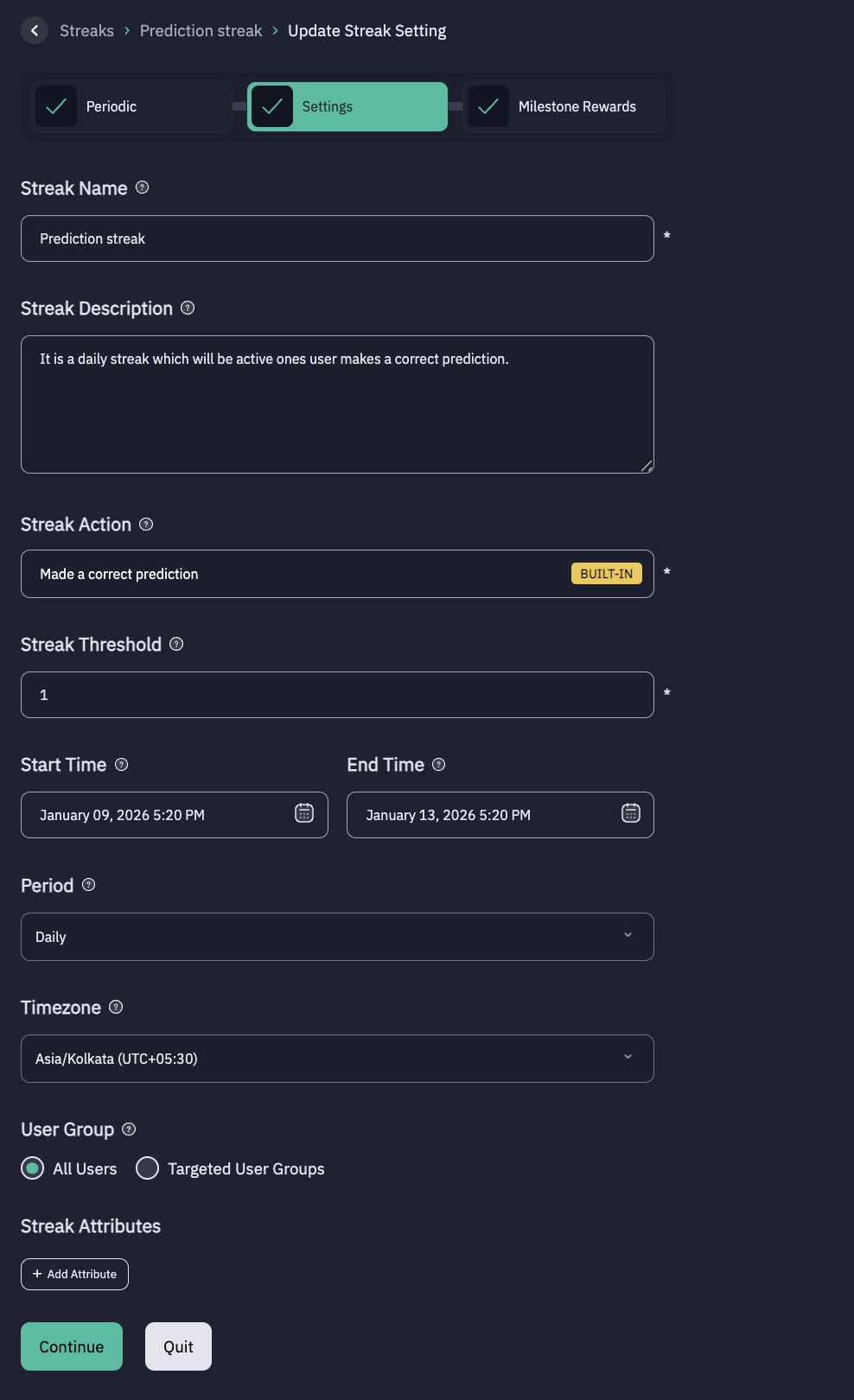2. Configure Periodic Streak Settings