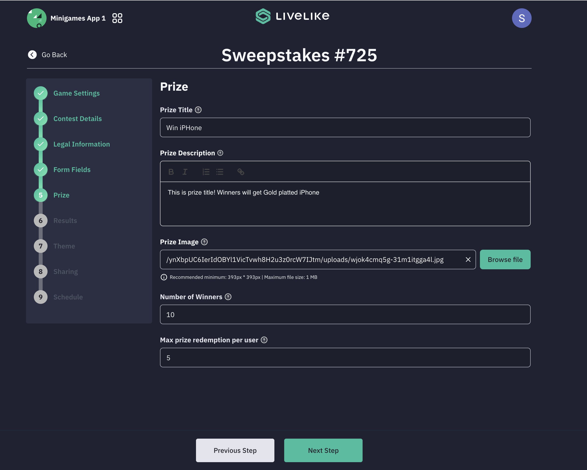 - Prize Image: Upload an image of the prize