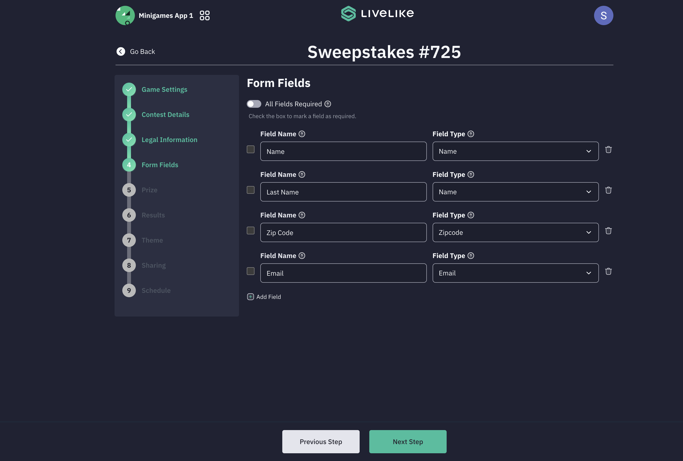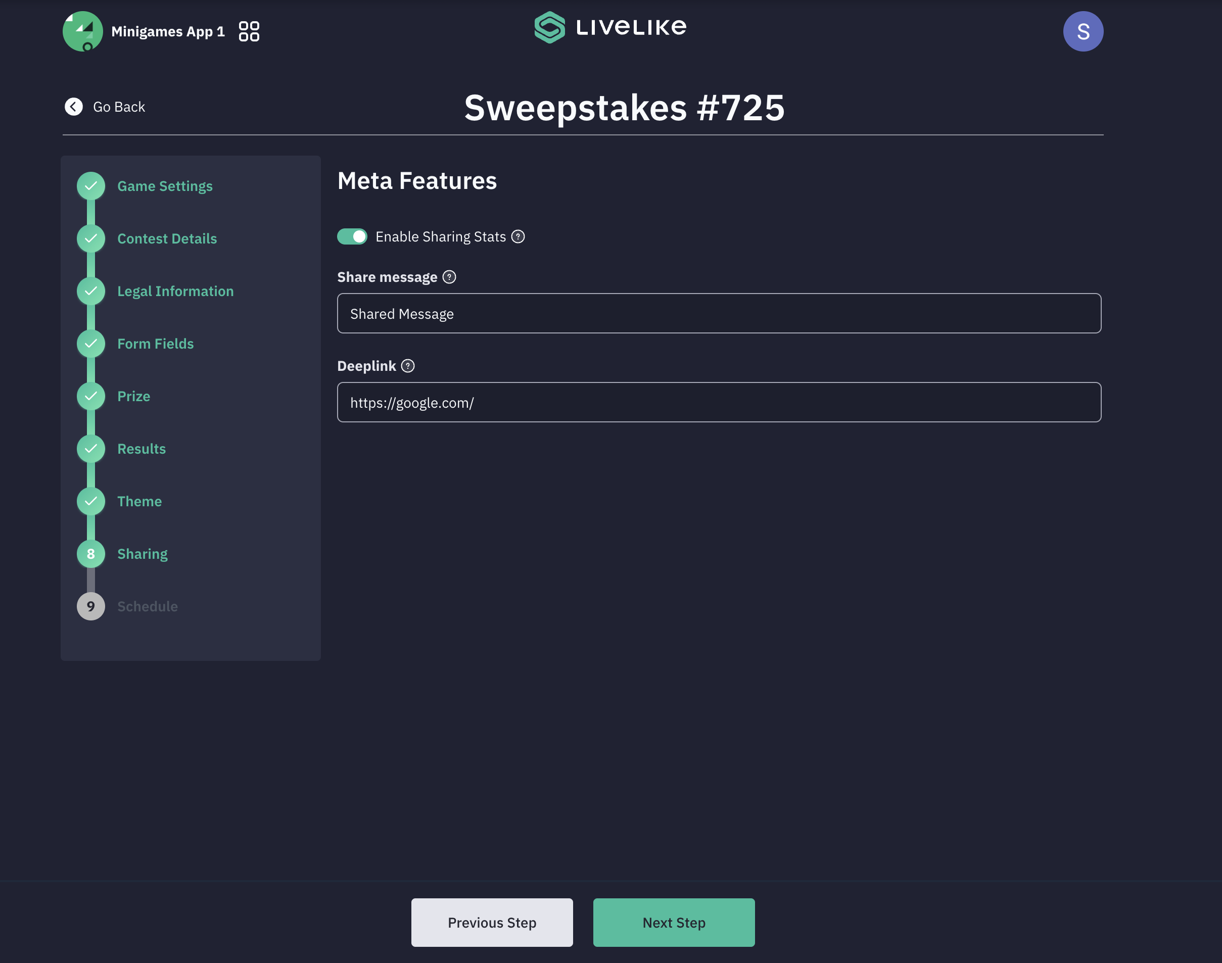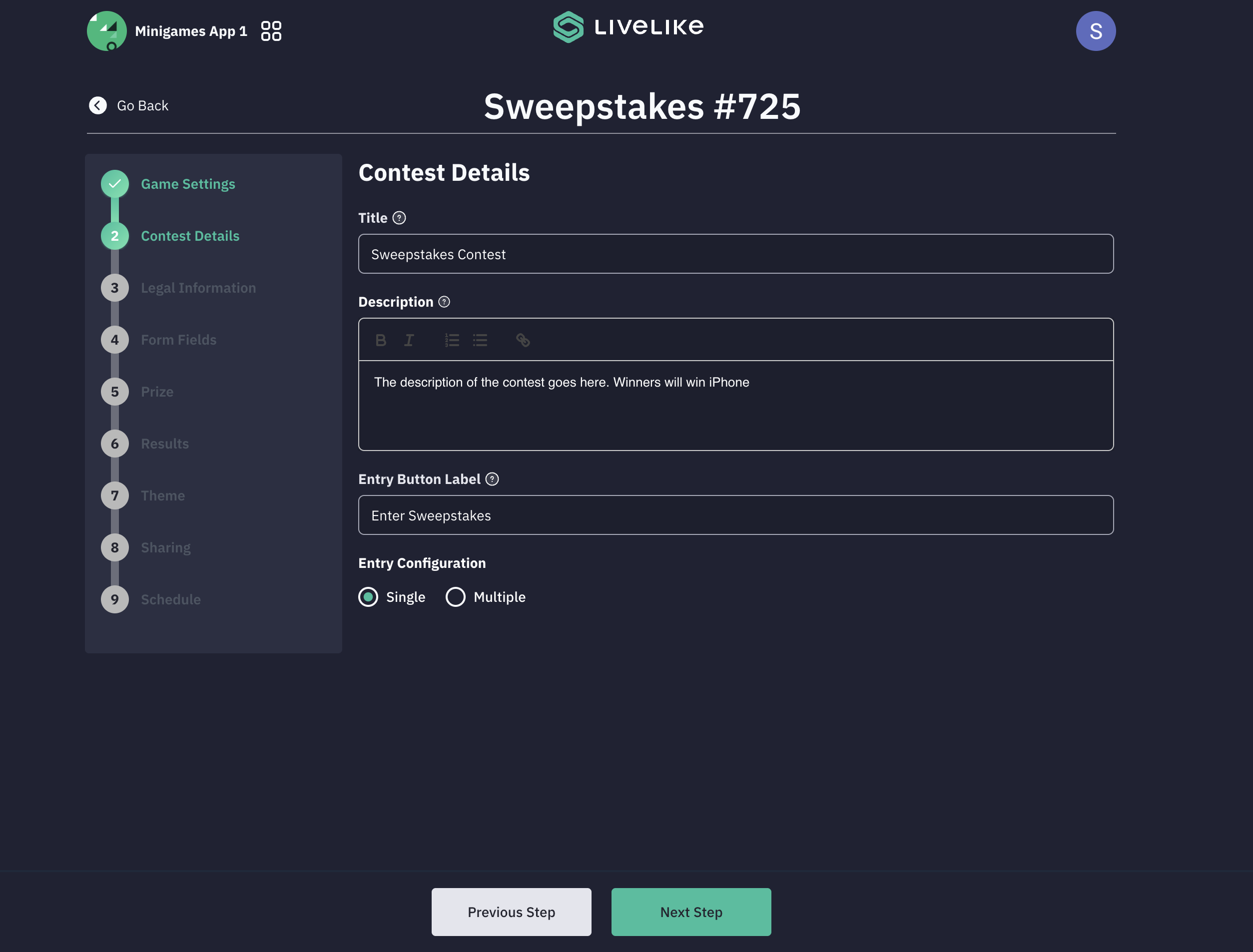 Sweepstakes Setup Steps