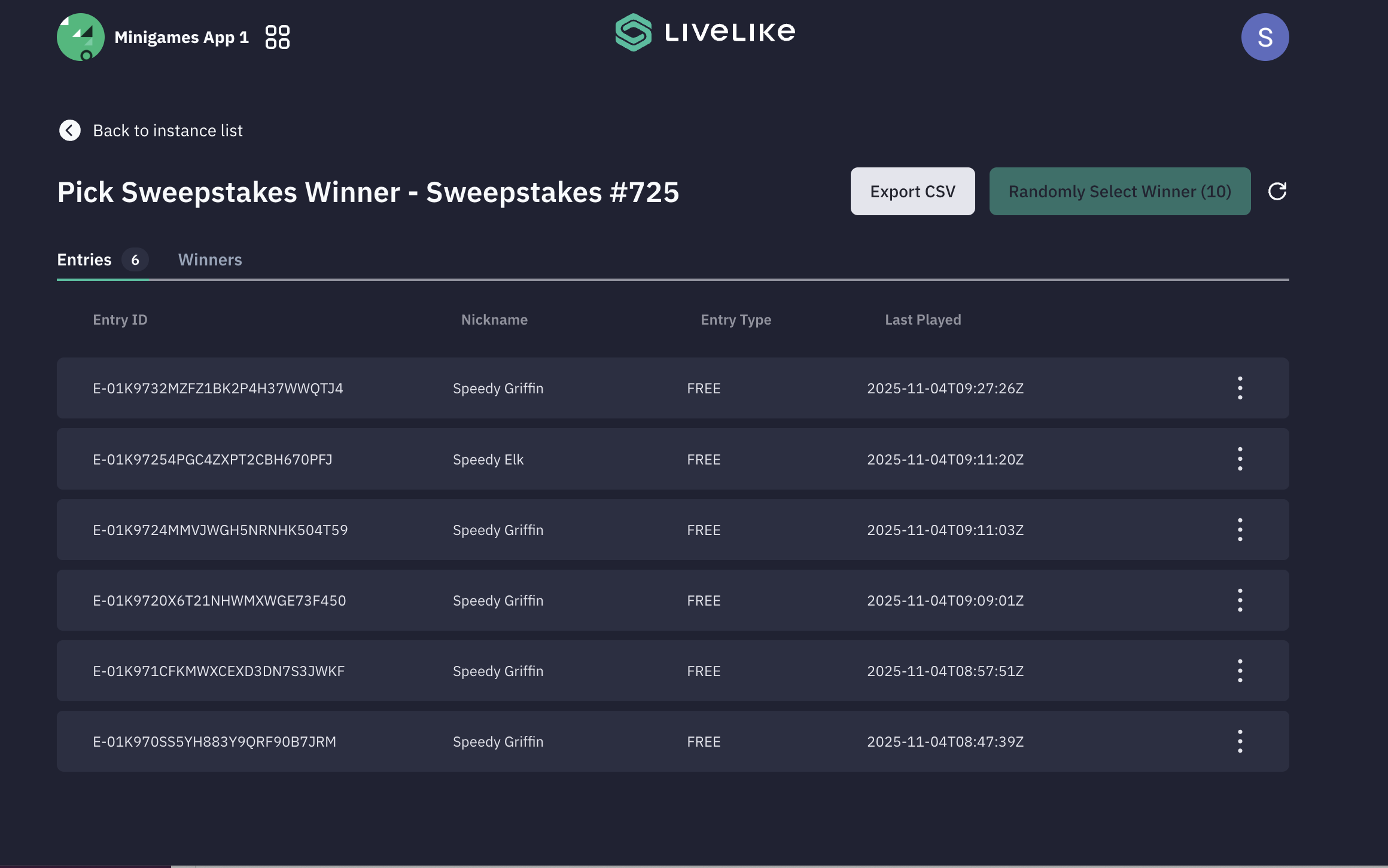 ii. You can check all the entries for the sweepstakes along with the winners.